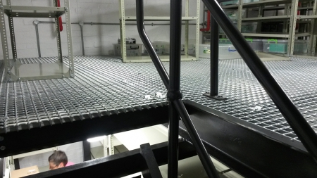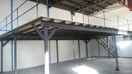 About... Structural Mezzanine Floor Structural mezzanine floors are custom designed and creates an open floor underneath the mezzanine level. Beams can be specified to carry much larger weight and span more than double the rack supported beams to give it an overall clearer floor space. An engineers certificate will always be handed over on completion. Various floor finishes are available ranging from: open or closed steel panels to timber, carpeted of tiled options. Loads ranging from 350 kg to 1000 kg per square meter can be accommodated.